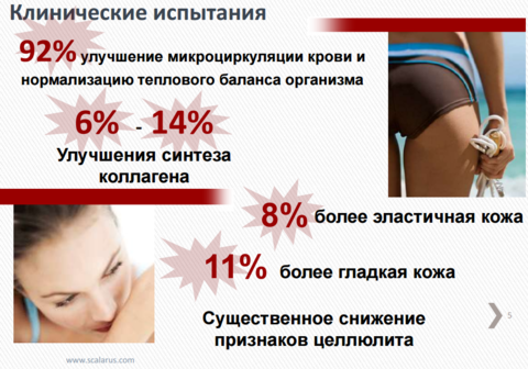 Инновационная технология биокристаллов, инкрустированных на наноуровне, непосредственно в ткань, стимулирует кровообращение, провоцируя структурные изменения в подкожно-жировом слое, связанные с нарушениями микроциркуляции и лимфатического оттока, создавая мощный лимфодренажный эффект. Кожа на проблемных участках заметно выравнивается, исчезает апельсиновая корка, объемы бедер и ягодиц уменьшаются.