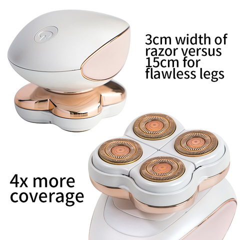 Флавлесс Легс (Flawless Legs) имеет эргономичную форму и красивый дизайн. Заряжается от сети и подходит для применения где бы то ни было. Его можно носить с собой в сумочке. Лезвия этого уникального прибора надежно спрятаны в кожухе. Четыре плавающих головки плавно повторяют контуры вашего тела.