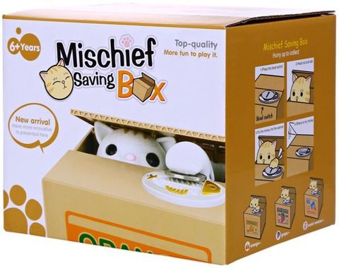Принцип работы копилки «Кошка воришка» настолько прост, насколько и занимателен. Достаточно просто положить монетку любого достоинства на коробку – и ее "прихватизирует" появившаяся из копилки кошачья лапка! Это на самом деле забавный и очень увлекательный подарок – теперь Ваш ребенок будет просить у вас денежку не на «мороженое», а на «покормить кошечку» и, сам того не понимая, будет откладывать деньги на покупку своей детской мечты. Прикольный и действительно забавный подарок!
