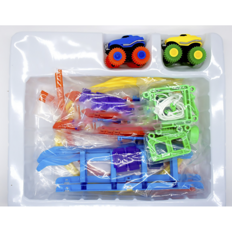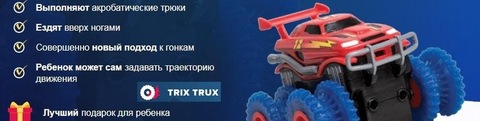 С машинками Trix Trux можно создать уникальные игровые сценарии, так как они могут передвигаться даже на паре колес, как на передних, так и задних. И больше того! Trix Trux могут ездить по натянутым в воздухе струнам, словно акробаты под куполом цирка.