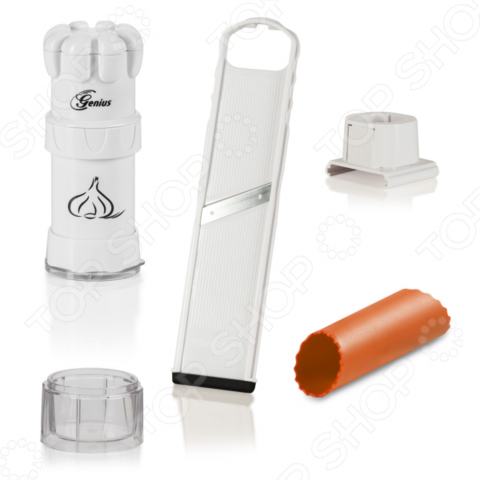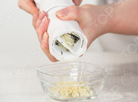 При повороте специальная платформа в верхней части продавит чеснок через режущие лезвия. Кроме того, в комплект входит слайсер, с помощью которого можно нарезать тонкими аккуратными ломтиками не только чеснок, но и другие некрупные овощи: помидоры черри, огурцы, редис, имбирь.