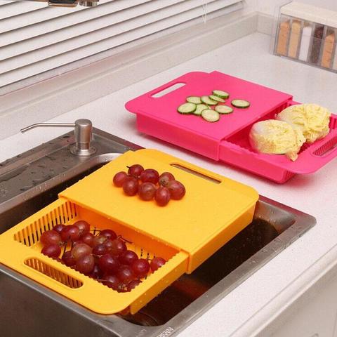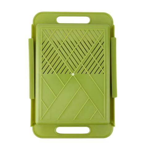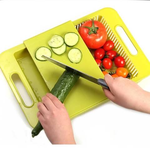 Многофункциональная разделочная доска Outdoor chopping board- надежный помощник на кухне для любой хозяйки. Даже если вы не особо умеете или любите готовить, все равно на кухне всегда должен быть минимальный набор предметов, с помощью которых готовка даже в неумелых руках будет спориться. Доска очень удобна в использовании, она произведена из прочного пластика и имеет специальное углубление для дуршлага. С его помощью безумно удобно мыть овощи и фрукты, а затем тут же их резать. Разделочная доска достаточной длины, чтобы стать на стандартную мойку.