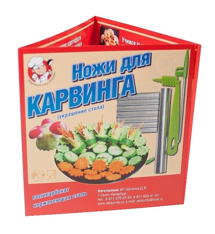 В переводе с английского 'карвинг' означает вырезание. В кулинарии этим методом создаются резные композиции из овощей и фруктов.Создавать кулинарные шедевры, которые заставят застыть от восхищения Ваших гостей, сегодня очень просто с набором для карвинга!