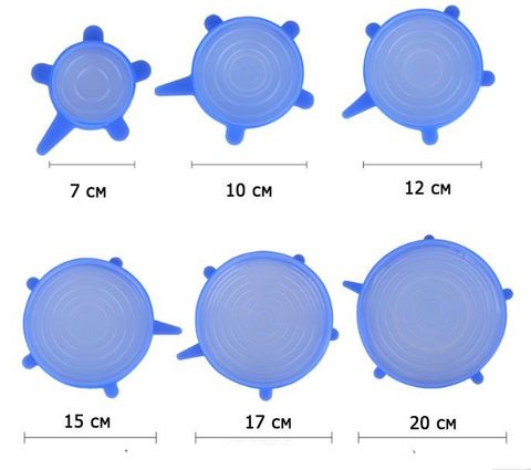 Растягивающиеся крышки в наборе разного диаметра незаменимы на любой кухне: домашней, офисной и даже походной. Благодаря материалу с высокой эластичностью и дополнительным бортиком на крышках, они плотно прилегают к краям посуды разного диаметра, а специальный язычок позволяет легко снять крышку и не повредить маникюр. Продукты сохраняются дольше, остаются свежими, не впитывают и не распространяют запахи в холодильнике.