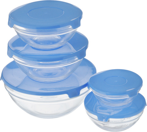 Набор стеклянных мисок (салатников) с крышками