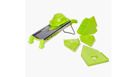 Овощерезка/терка Multi-function Shredder имеет несколько насадок с лезвиями различной формы. Ее конструкция позволяет производить нарезку над разделочной доской или над какой-либо емкостью. Процесс нарезки аналогичен с работой с обычной теркой. Для удерживания овощерезки у нее имеется удобная ручка, а нарезаемые овощи прижимаются к лезвиям специальным держателем.
