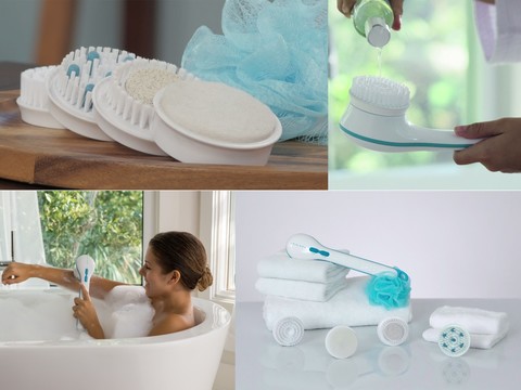 Со щеточкой для тела Wellneo Spin Spa Вы сможете создавать свой собственный спа-салон каждый раз, когда принимаете дома душ. Используйте любую из 5 насадок, насаживаемых на вращающуюся основу, чтобы побаловать свое тело от макушки до кончиков пальцев: