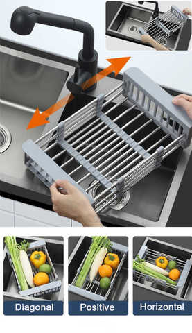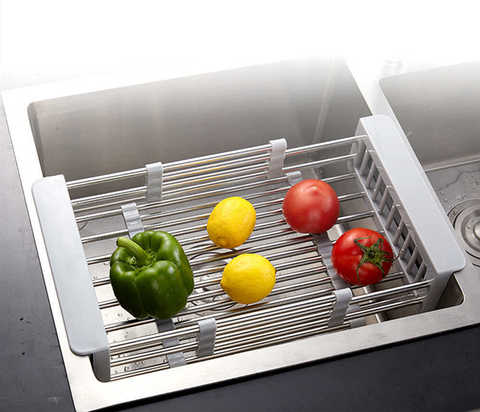 Раздвижная сетка-сушилка для раковины отлично подойдет для сушки овощей и фруктов, посуды и столовых приборов после мытья. Раздвижная конструкция легко адаптируется к раковинам любого размера.
