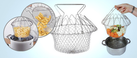 Представляем вам Складная корзина решетка для приготовления пищи Chef basket - Шеф баскет, которая заменит всю громоздкую кухонную утварь! В ней можно мыть, варить, кипятить и жарить все ваши любимые блюда.