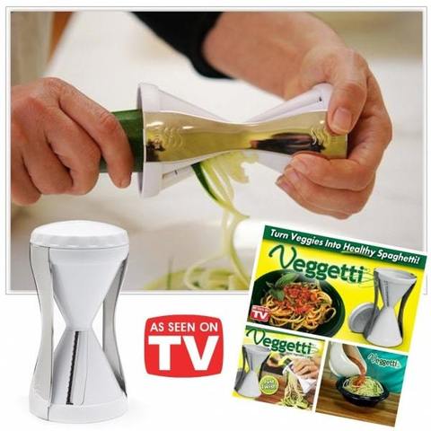 Овощерезка Veggetti (Вегетти) - изготовлен из прочного АБС-пластика, а лезвия овощерезки из нержавеющей стали. Нож Veggetti помогает нарезать длинные овощные нити.