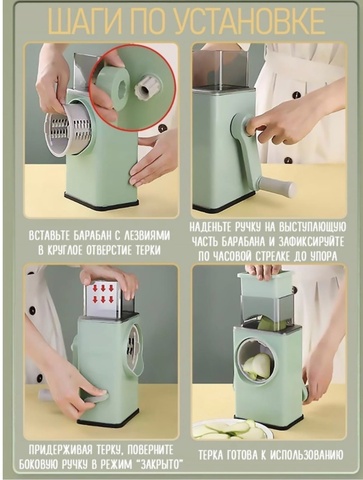 Терка обладает достаточно большим функционалом. Нарезать соломкой, кольцами, слайсами – с этим с легкостью справится овощерезка, позволив Вам создавать новые кулинарные шедевры за считанные минуты. С помощью данного набора можно невероятно быстро и просто нарезать фрукты и овощи, а также, при желании, яйца и сыр. Данные насадки дадут Вам возможность выбрать любою желаемую форму и размер для нарезки продукта, ломтики будут получаться ровными и не будут деформироваться. Независимо от того, что Вы нарезаете, все кусочки получатся одинаковыми и красивыми. Овощерезка проста и безопасна в использовании. Выберете желаемую насадку, поместите продукт в секцию подвижной рукоятки – это исключает возможность порезов – затем сдвиньте вперед-назад по лезвию.
