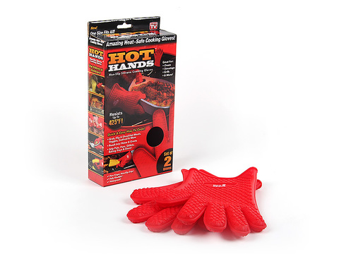 Перчатки Hot Hands может выдержать температуру около 500°С. Она отлично подходит для всего горячего, жареного, печёного. Перчаткой можно работать, как прихваткой, вместо того чтобы искать по всей кухне, чем бы ухватить горячий противень или горячую форму для торта. Перчатка поможет вынуть всё из раскалённой духовки. Перчатки Hot Hands водоотталкивающие и водонепроницаемые, значит, можно вынимать варёные яйца прямо из кипящей воды. Теперь вы убедились, что перчатки Hot Hands сочетают в себе два важных свойства, — жаростойкость и водонепроницаемость, — вы знаете, как важны эти свойства на кухне.