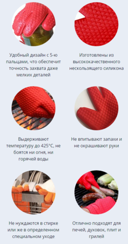 Кухня — это святое место, где можно каждый день экспериментировать с новыми рецептами и удивлять своих домашних вкусными блюдами. Вы знаете, как важно иметь под рукой все необходимые приспособления и инструменты — ножи, прихватки и т.д., без которых трудно обойтись, и можно даже испортить блюдо. Мы предлагаем вам новую современную технологию — перчатки для гриля.