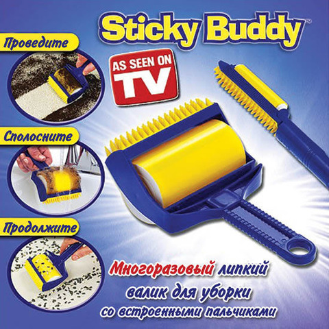 Стики Бадди — лучший продукт среди своих аналогов, который приведет в идеальный порядок рабочие поверхности, деревянные изделия, керамические плитки и идеально отмоет пол. Нет следам! Sticky Buddy изготовлен из силиконового ацетона. Он не оставляет никаких следов, прилипая к поверхности — это его самое замечательное и выдающееся свойство! Применяйте его как обычный валик для уборки, который собирает крошки, зерна, волосы и прочий мелкий мусор. Используйте этот липкий валик для чистки одеял, сидений в машине, кресел. Используйте его как валик для одежды на всех возможных видах ткани, на замше, и на шелке, он не оставляет следов даже от клея! Когда чистка одежды окончена, просто сполосните Стики бадди в чистой воде, дайте высохнуть, и в дальнейшем пользуйтесь снова: поверхность его продолжает оставаться липкой.